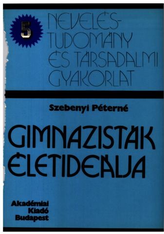 Szebenyi, Péterné (1975) Gimnazisták életideálja. Neveléstudomány és társadalmi gyakorlat (5). Akadémiai Kiadó, Budapest. ISBN 963-05-0753-6
