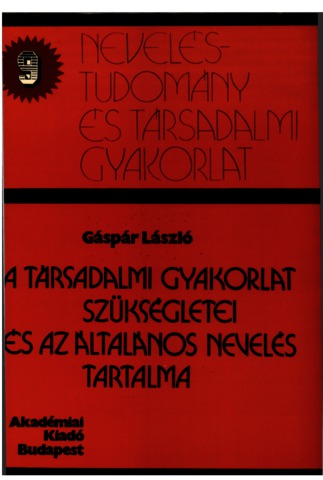 Gáspár, László (1977) A társadalmi gyakorlat szükségletei és az általános nevelés tartalma. Neveléstudomány és társadalmi gyakorlat (9). Akadémiai Kiadó, Budapest. ISBN 963-05-1412-5
