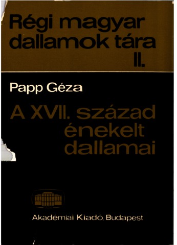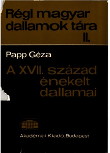 Papp, Géza (1970) A XVII. század énekelt dallamai. Régi magyar dallamok tára (2). Akadémiai Kiadó, Budapest.