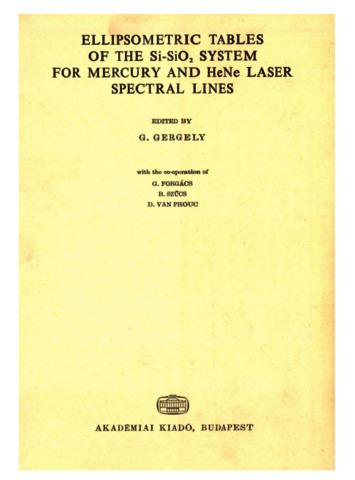 Gergely, G., ed. (1971) Ellipsometric tables of the Si-Si02 system for mercury and HeNe laser spectral lines. Publications of the Research Institute for Technical Physics of the Hungarian Academy of Sciences . Akadémiai Kiadó, Budapest.