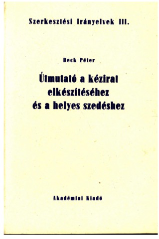 Beck, Péter (1963) Útmutató a kézirat elkészítéséhez és a helyes szedéshez. Szerkesztési irányelvek (3). Akadémiai Kiadó, Budapest.