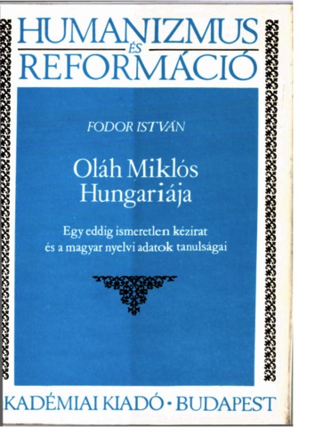 Fodor, István (1990) Oláh Miklós Hungáriája : Egy eddig ismeretlen kézirat és a magyar nyelvi adatok tanulságai. Humanizmus és reformáció (17). Akadémiai Kiadó, Budapest.