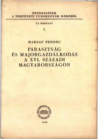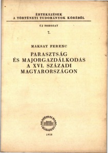 Maksay, Ferenc (1958) Parasztság és majorgazdálkodás a XVI. századi Magyarországon. Értekezések a történeti tudományok köréből. Új sorozat (7). Akadémiai Kiadó, Budapest.