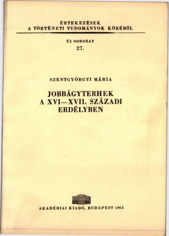 Szentgyörgyi, Mária (1962) Jobbágyterhek a XVI-XVII. századi Erdélyben. Értekezések a történeti tudományok köréből. Új sorozat (27). Akadémiai Kiadó, Budapest.