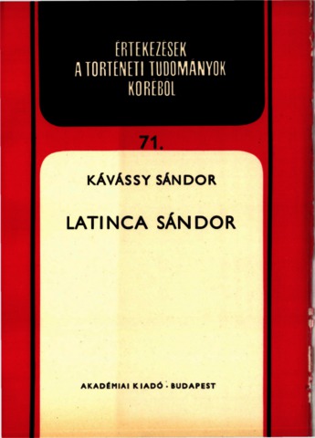 Kávássy, Sándor (1973) Latinca Sándor. Értekezések a történeti tudományok köréből. Új sorozat (71). Akadémiai Kiadó, Budapest.
