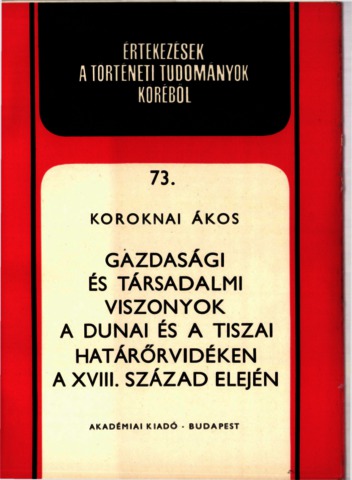Koroknai, Ákos (1974) Gazdasági és társadalmi viszonyok a dunai és a tiszai határőrvidéken a XVIII. század elején. Értekezések a történeti tudományok köréből. Új sorozat (73). Akadémiai Kiadó, Budapest. ISBN 963-05-0430-8