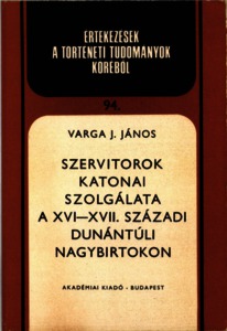 Varga, J. János (1981) Szervitorok katonai szolgálata a XVI-XVII. századi dunántúli nagybirtokon. Értekezések a történeti tudományok köréből. Új sorozat (94). Akadémiai Kiadó, Budapest. ISBN 963-05-2696-4