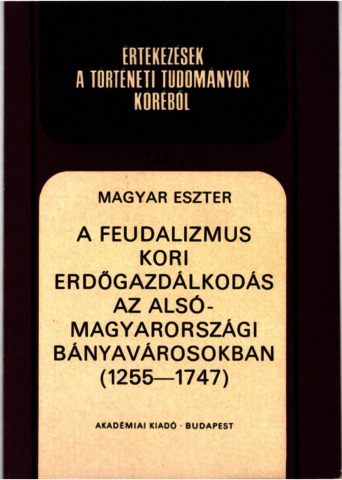 Magyar, Eszter (1983) A feudalizmus kori erdőgazdálkodás az alsó-magyarországi bányavárosokban, 1255-1747. Értekezések a történeti tudományok köréből. Új sorozat (101). Akadémiai Kiadó, Budapest. ISBN 963-05-3301-4