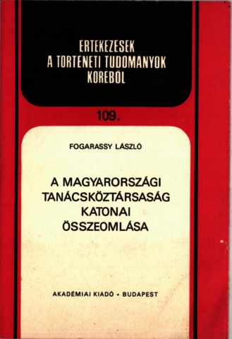Fogarassy, László (1988) A magyarországi Tanácsköztársaság katonai összeomlása. Értekezések a történeti tudományok köréből. Új sorozat (109). Akadémiai Kiadó, Budapest. ISBN 963-05-4968-9
