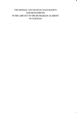 Az Akadémiai Könyvtár Keleti Gyűjteményében őrzött mongol és mandzsu kézirat- és fanyomatgyűjtemény katalógusa.