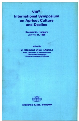 Klement, Z., ed. (1986) VIIIth International Symposium on Apricot Culture and Decline, Kecskemét, Hungary, July 15-21, 1985. Akadémiai Kiadó, Budapest. ISBN 963-05-4474-1