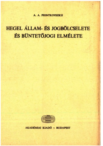 Piontkovskij, Andrej Andreevič (1972) Hegel állam- és jogbölcselete és büntetőjogi elmélete. Akadémiai Kiadó, Budapest.