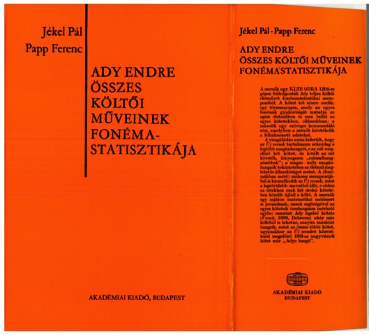 Jékel, Pál (1974) Ady Endre összes költői műveinek fonémastatisztikája. Akadémiai Kiadó, Budapest. ISBN 963-05-0095-7