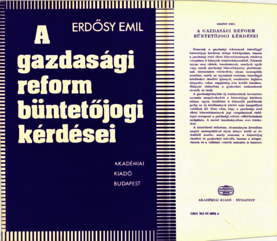 Erdősy, Emil (1976) A gazdasági reform büntetőjogi kérdései. Akadémiai Kiadó, Budapest. ISBN 963-05-0896-6