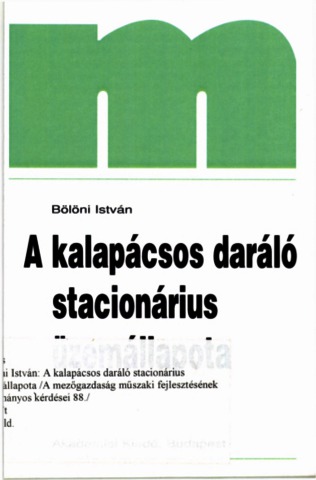 Bölöni, István (2002) A kalapácsos daráló stacionárius üzemállapota. A mezőgazdaság műszaki fejlesztésének tudományos kérdései (88). Akadémiai Kiadó, Budapest. ISBN 963-05-7925-1