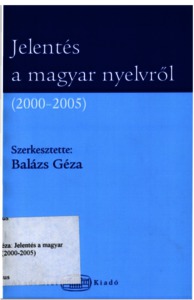 Balázs, Géza, ed. (2005) Jelentés a magyar nyelvről, 2000-2005. Akadémiai Kiadó, Budapest. ISBN 963-05-8270-8