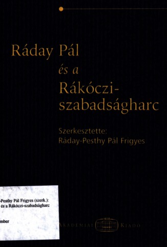 Ráday-Pesthy, Pál Frigyes, ed. (2005) Ráday Pál és a Rákóczi-szabadságharc. Akadémiai Kiadó, Budapest. ISBN 963-05-8313-5
