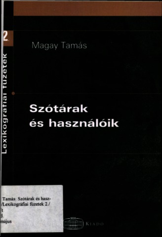 Magay, Tamás, ed. (2006) Szótárak és használóik. Lexikográfiai füzetek (2). Akadémiai Kiadó, Budapest. ISBN 963-05-8341-0
