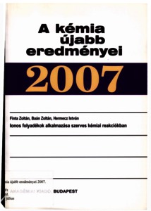 Finta, Zoltán and Baán, Zoltán and Hermecz, István (2007) Ionos folyadékok alkalmazása szerves kémiai reakciókban. A kémia újabb eredményei (98). Akadémiai Kiadó, Budapest. ISBN 978-963-05-8499-9