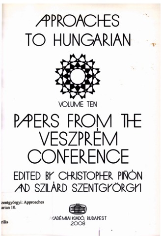 Piñón, Christopher and Szentgyörgyi, Szilárd, eds. (2008) Papers from the Veszprém Conference. Approaches to Hungarian (10). Akadémiai Kiadó, Budapest. ISBN 978-963-05-8593-4