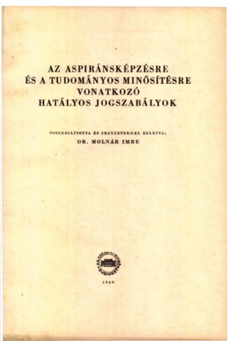 UNSPECIFIED, ed. (1960) Az aspiránsképzésre és a tudományos minősítésre vonatkozó hatályos jogszabályok. Akadémiai Kiadó, Budapest.