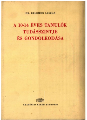 Kelemen, László (1963) A 10-14 éves tanulók tudásszintje és gondolkodása. Akadémiai Kiadó, Budapest.