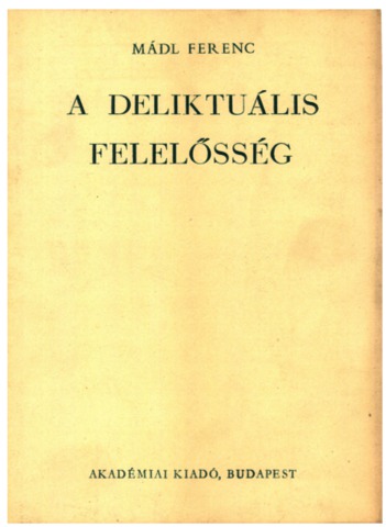 Mádl, Ferenc (1964) A deliktuális felelősség a társadalom és a jog fejlődésének történetében. Akadémiai Kiadó, Budapest.