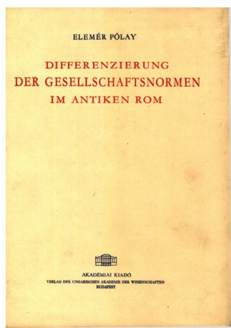 Pólay, Elemér (1964) Differenzierung der Gesellschaftsnormen im antiken Rom. Akadémiai Kiadó, Budapest.