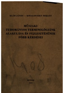 Kovalovszky, Miklós (1955) Műszaki tudományos terminológiánk alakulása és fejlesztésének főbb kérdései. Akadémiai Kiadó, Budapest.