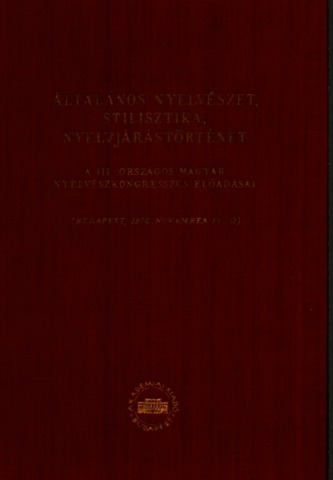 Kniezsa, István (1956) Általános nyelvészet, stilisztika, nyelvjárástörténet. A 3. Országos Magyar Nyelvészkongresszus előadásai, Budapest, 1954. november 11-13. Akadémiai Kiadó, Budapest.