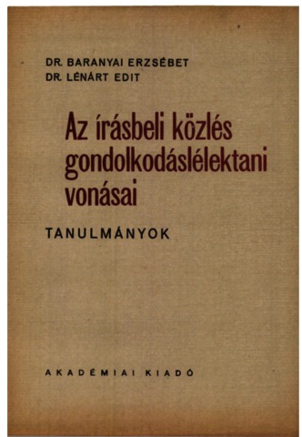 Baranyai, Erzsébet (1959) Az írásbeli közlés gondolkodáslélektani vonásai. Tanulmányok. Akadémiai Kiadó, Budapest.