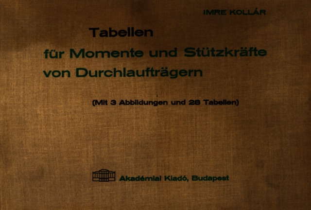 Kollár, Imre (1965) Tabellen für Momente und Stützkräfte von Durchlaufträgern. Akadémiai Kiadó, Budapest.