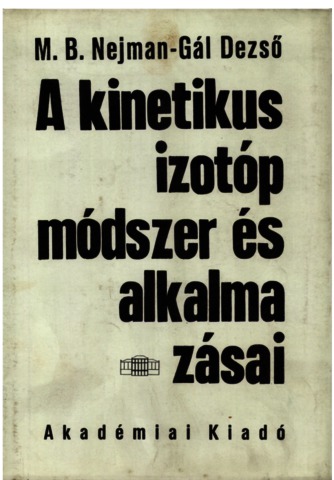 Nejman, Moisej Borisovič and Gál, Dezső (1967) A kinetikus izotóp módszer és alkalmazásai. Akadémiai Kiadó, Budapest.