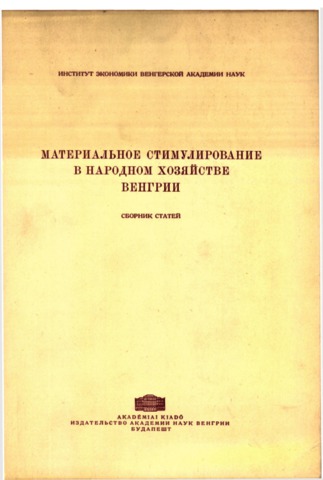 Friss, István and Hegedűs, András (1962) Material'noe stimulirovanie v narodnom hozâjstve Vengrii. Sbornik statej. Akadémiai Kiadó, Budapest.