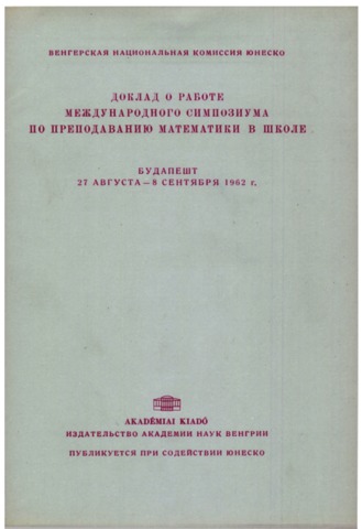 UNSPECIFIED, ed. (1963) Doklad o rabote Meždunarodnogo simpoziuma po prepodavaniû matematiki v škole. Akadémiai Kiadó, Budapest.