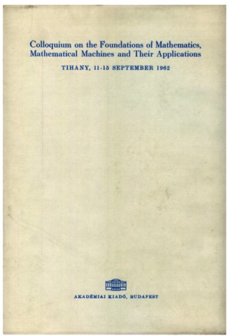 Kalmár, László, ed. (1965) Colloquium on the Foundations of Mathematics, Mathematical Machines and Their Applications. Tihany, 11-15. Sept. 1962. Akadémiai Kiadó, Budapest.