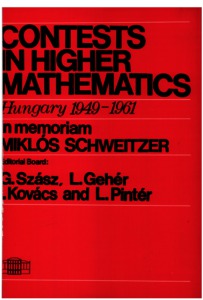 Szász, Gábor and Gehér, L. and Kovács, I. and Pintér, L., eds. (1968) Contests in higher mathematics. Hungary, 1949-1961. In memoriam Miklós Schweitzer. Akadémiai Kiadó, Budapest.