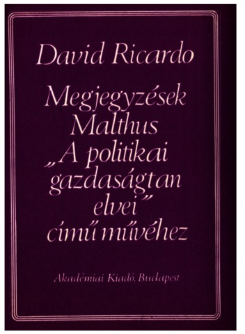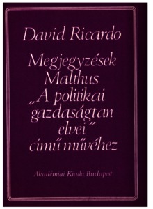 Ricardo, David (1969) Megjegyzések Malthus „A politikai gazdaságtan elvei” című művéhez. Malthus könyvének szövegével. Akadémiai Kiadó, Budapest.