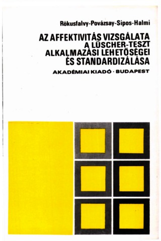 Rókusfalvy, Pál and Povázsai, Éva and Sipos, Kornél and Halmi, György (1971) Az affektivitás vizsgálata. A Lüscher-teszt alkalmazási lehetőségei és standardizálása. Akadémiai Kiadó, Budapest.