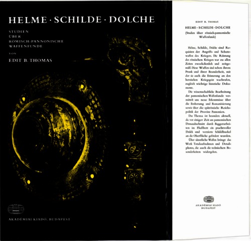 Thomas, Edit B. (1971) Helme, Schilde, Dolche. Studien über römisch-pannonische Waffenfunde. Akadémiai Kiadó, Budapest.