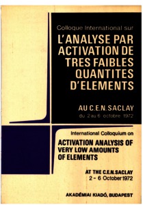 UNSPECIFIED, ed. (1974) Colloque International sur l'Analyse par Activation de Tres Faibles Quantites d'Elements : Saclay, 2-9. octobre 1972. Akadémiai Kiadó, Budapest. ISBN 963-05-0471-5