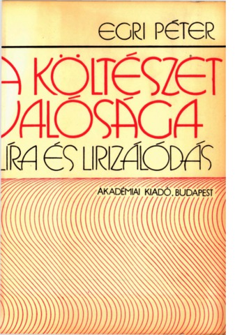 Egri, Péter (1975) A költészet valósága. Líra és lirizálódás. Akadémiai Kiadó, Budapest. ISBN 963-05-0539-8
