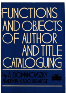 Domanovszky, Ákos (1975) Functions and objects of author and title cataloguing. Akadémiai Kiadó, Budapest.