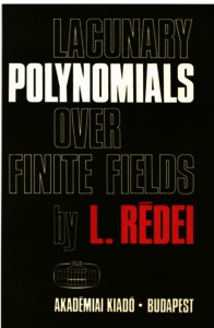 Rédei, László (1973) Lacunary polynomials over finite fields. Akadémiai Kiadó, Budapest.