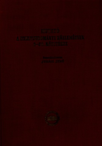 Juhász, Jenő, ed. (1955) Mutató a Nyelvtudományi Közlemények 1-50. kötetéhez. Folyóirat mutatók (1). Akadémiai Kiadó, Budapest.