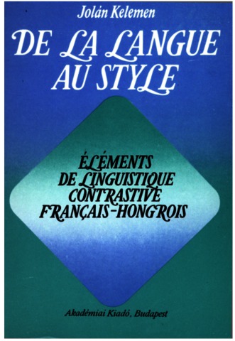 Kelemen, Jolán (1988) De la langue au style. éléments de linguistique contrastive français - hongrois. Akadémiai Kiadó, Budapest. ISBN 963-05-4687-6