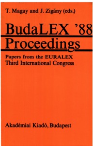Magay, T. and Zigány, J., eds. (1990) Budalex '88. Proceedings. Papers from the 3rd International Euralex Congress, Budapest, 4-9 September 1988. Akadémiai Kiadó, Budapest. ISBN 963-05-5863-7
