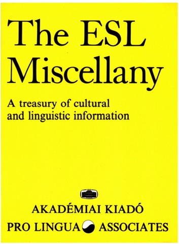 Clark, Raymond C. (1991) The ESL miscellany. A treasury of cultural and linguistic information. Akadémiai Kiadó - Pro Lingua Associates, Budapest. ISBN 963-05-6576-5