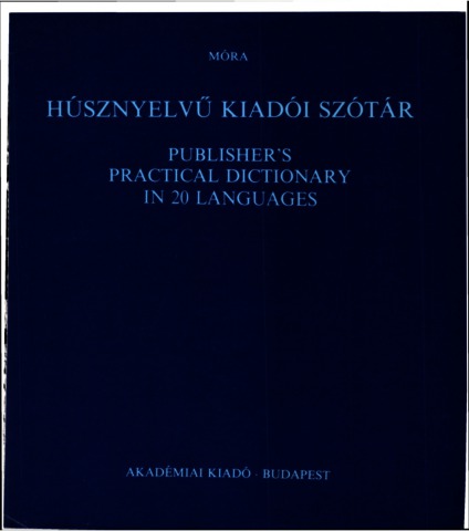 Móra, Imre (1984) Húsznyelvű kiadói szótár 2. Húsznyelvű kiadói szótár . Akadémiai Kiadó, Budapest. ISBN 963-05-3151-8