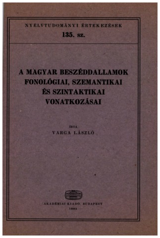 Varga, László (1993) Magyar beszéddallamok fonológiai, szemantikai és szintaktikai vonatkozásai. Nyelvtudományi értekezések (135). Akadémiai Kiadó, Budapest. ISBN 963-05-6275-8